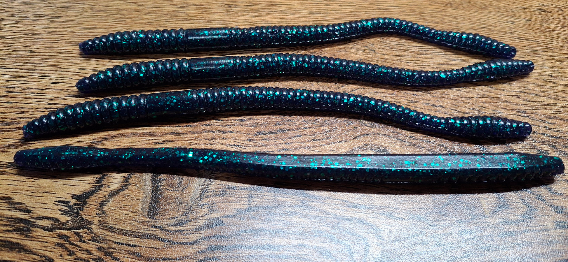 The legendary Deadly Lures Straightworms are always available for you to catch big fish! Select your color and flake options, pick a bag size, and "End Your Skunk Streak Today"!